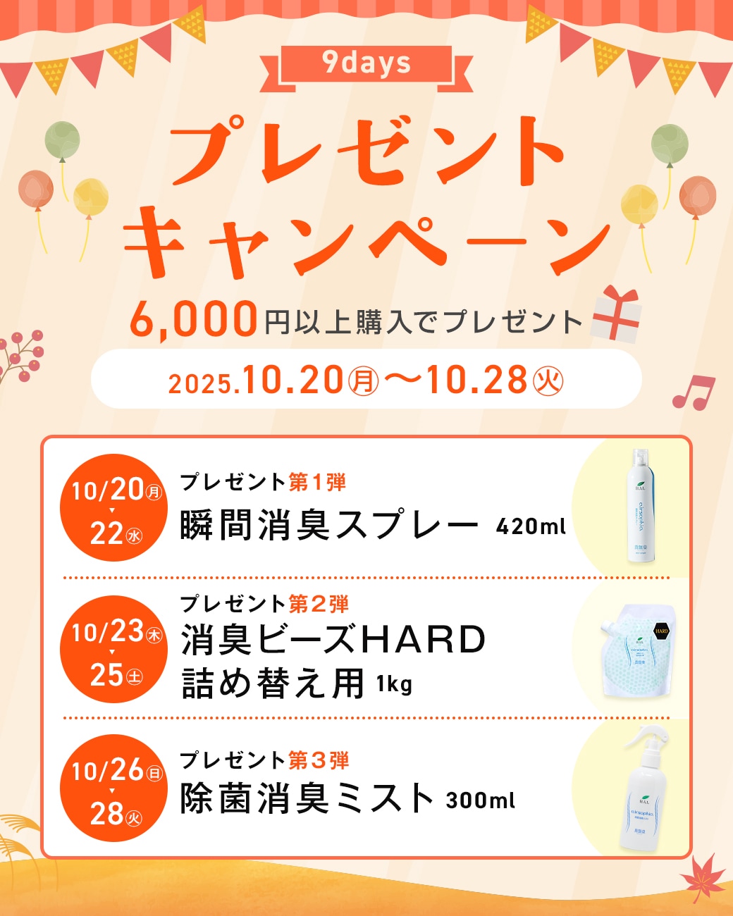 10月20日(月)~10月28日(火)の期間プレゼントキャンペーンを実施いたします。
