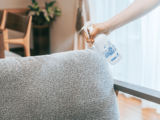 衣類やソファ、ベッドなどの布製品に使える蓄圧式除菌消臭ミスト。日常のさまざまなシーンで、気になるニオイをやさしく整えます。