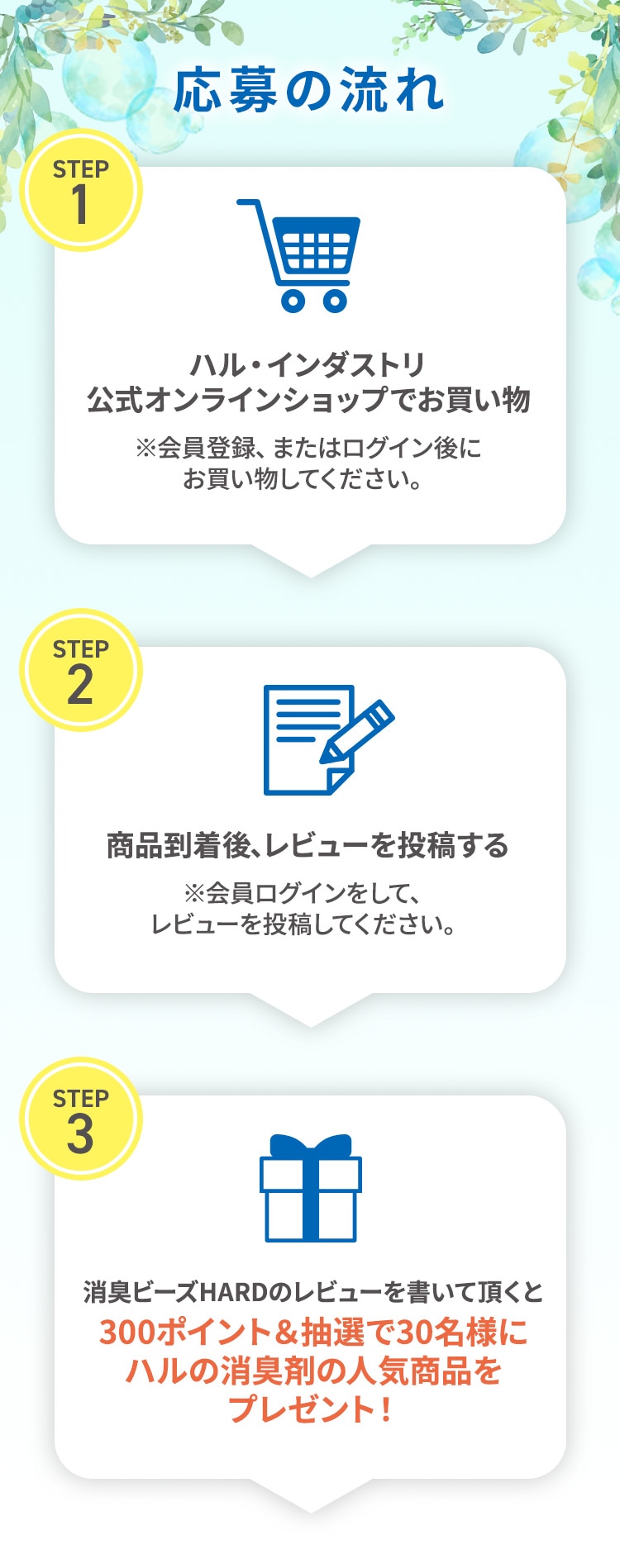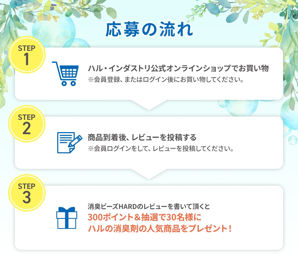 中から抽選でハルの消臭剤セットをプレゼントいたします。